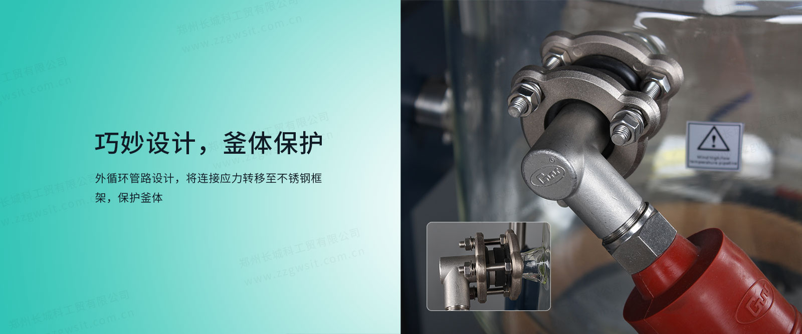 ● 夾套進、出液口連接不銹鋼保溫軟管,減少進出液口應力。
