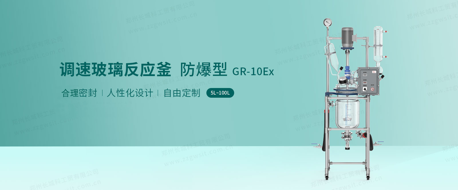 GR系列防爆玻璃反應釜型號有GR-5Ex,GR-10Ex,GR-20Ex,GR-30Ex,GR-50Ex,GR-80Ex,GR-100Ex,釜內容積分別是5L,10L,20L,30L,50L,80L,100L。