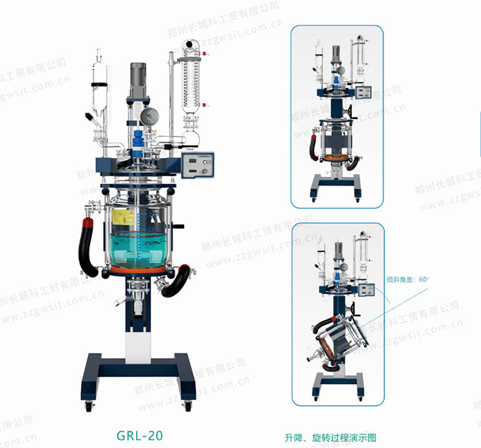 GRL-Ex防爆升降玻璃反應釜廠家整套系統,通常包括: