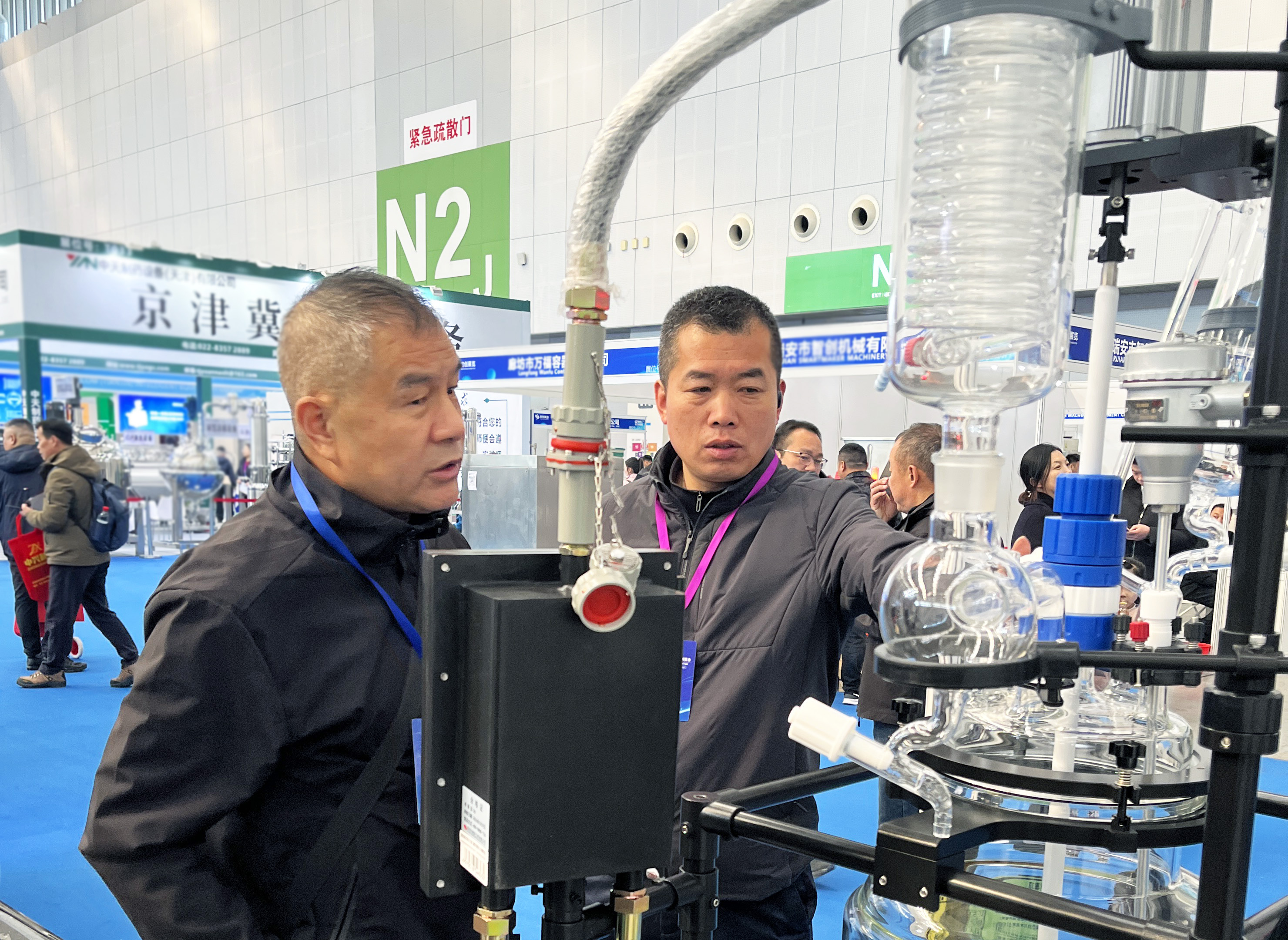 我們的技術團隊與銷售精英全程駐守,細致講解產品性能、應用場景與解決方案,針對制藥行業易燃易爆物料處理、精準控溫、高效提純等核心需求,提供了定制化的設備配置方案,讓客戶直觀感受到長城科工貿在制藥裝備領域的專業實力。